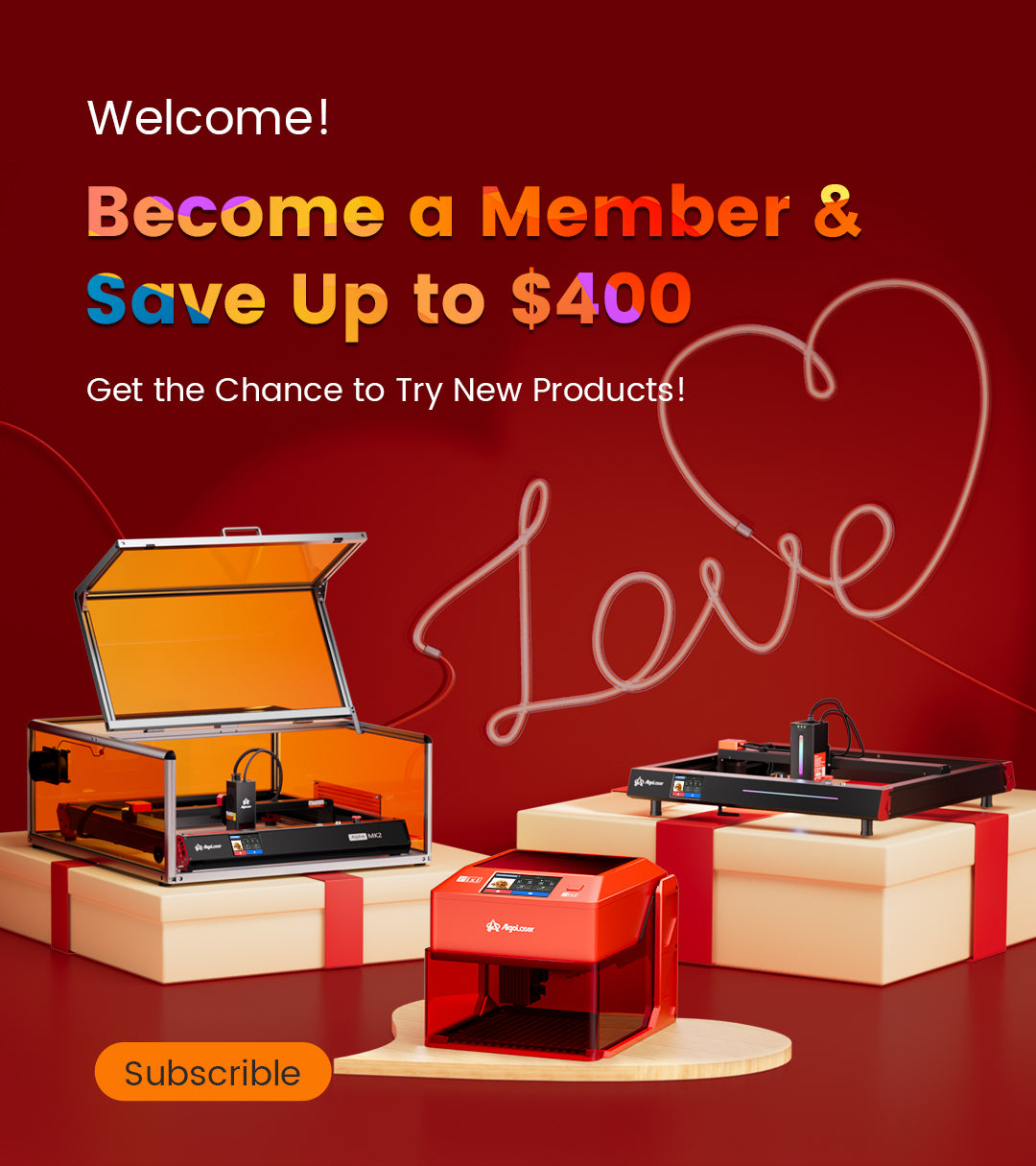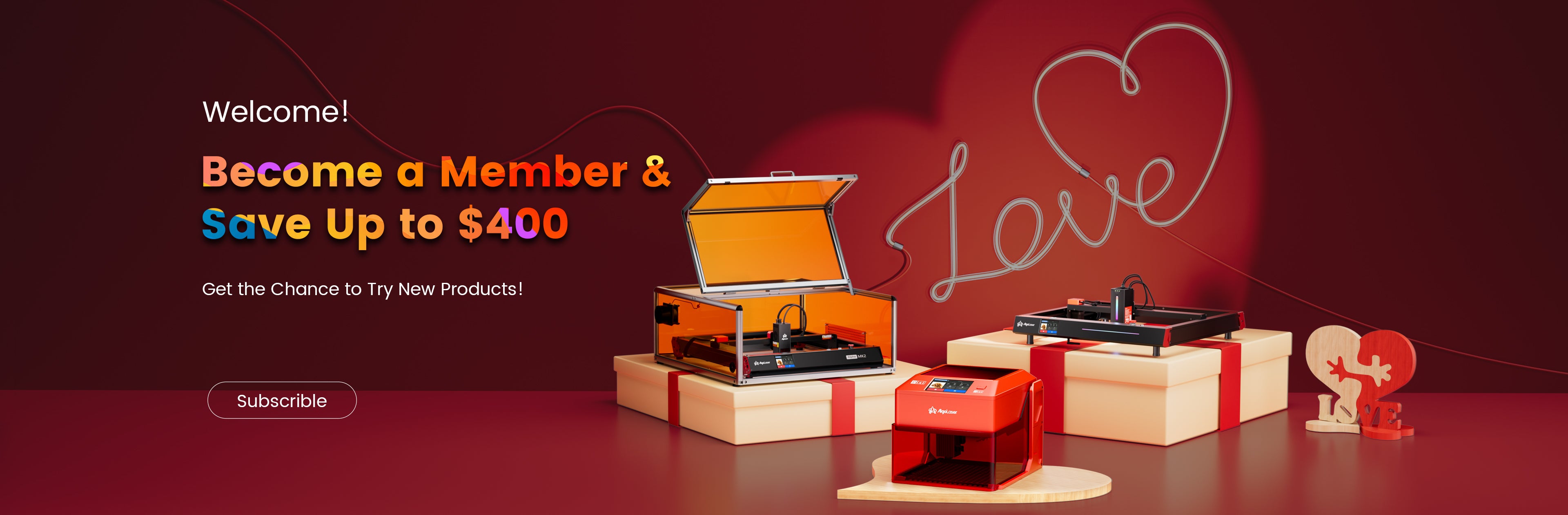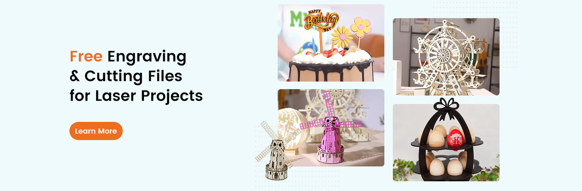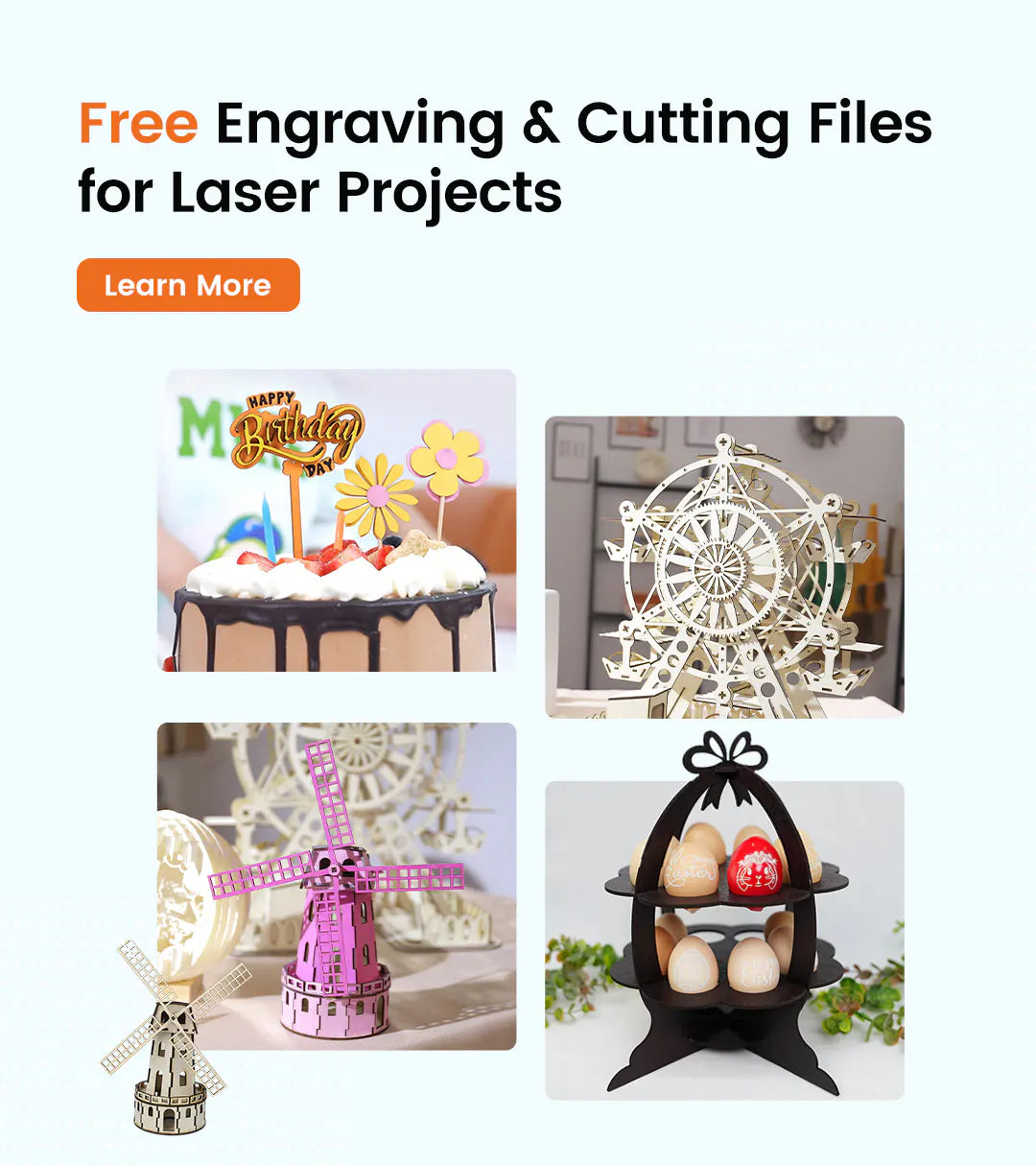 Láser de 20 W con área de 400 × 435 mm para la mayoría de proyectos de pasatiempos y pequeñas empresas, desde carteles hasta regalos personalizados.