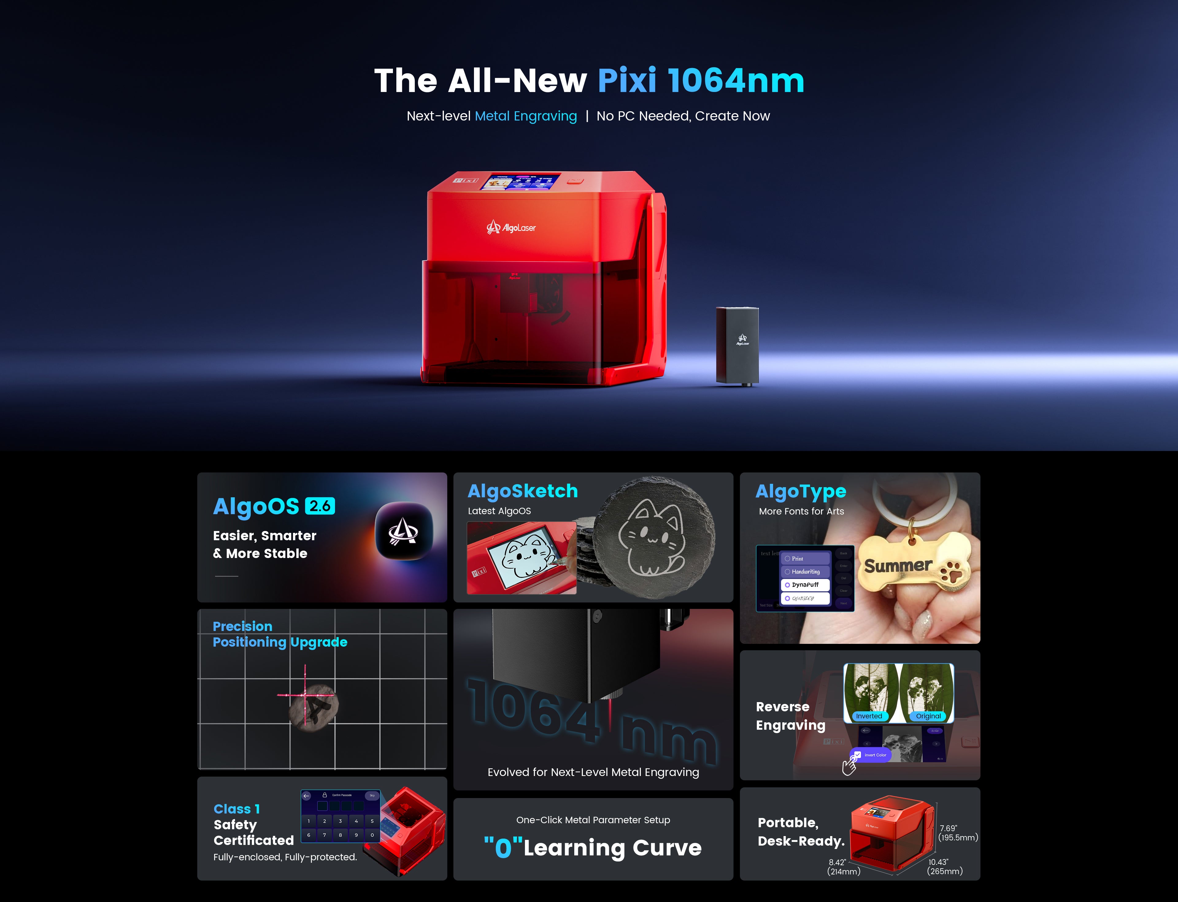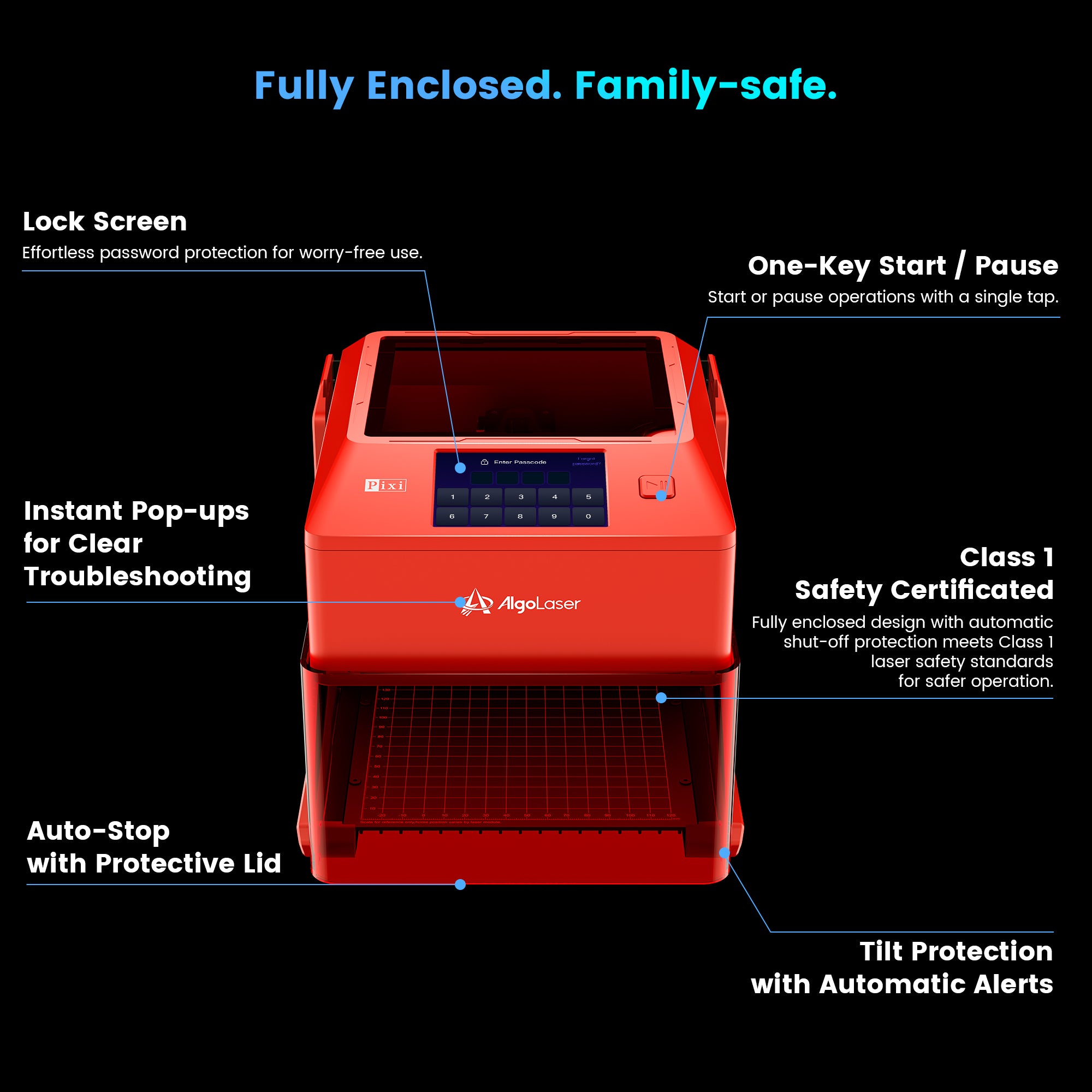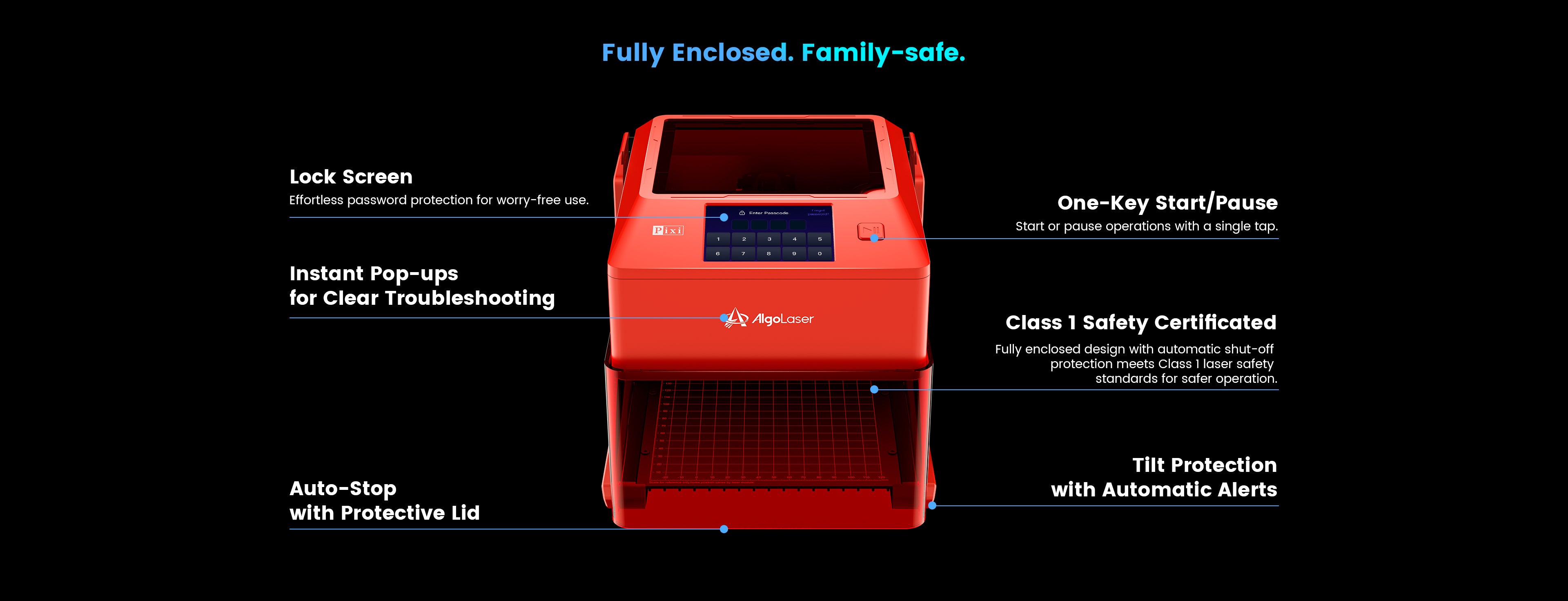 Grabador láser inteligente infrarrojo AlgoLaser Pixi de 1,5 W y 1064 nm con carcasa