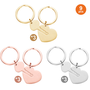 Diseño simbólico, combinación perfecta: este juego de llaveros de acero inoxidable de 9 piezas presenta formas de corazón y llave, ideales para parejas, mejores amigos y para crear regalos significativos.